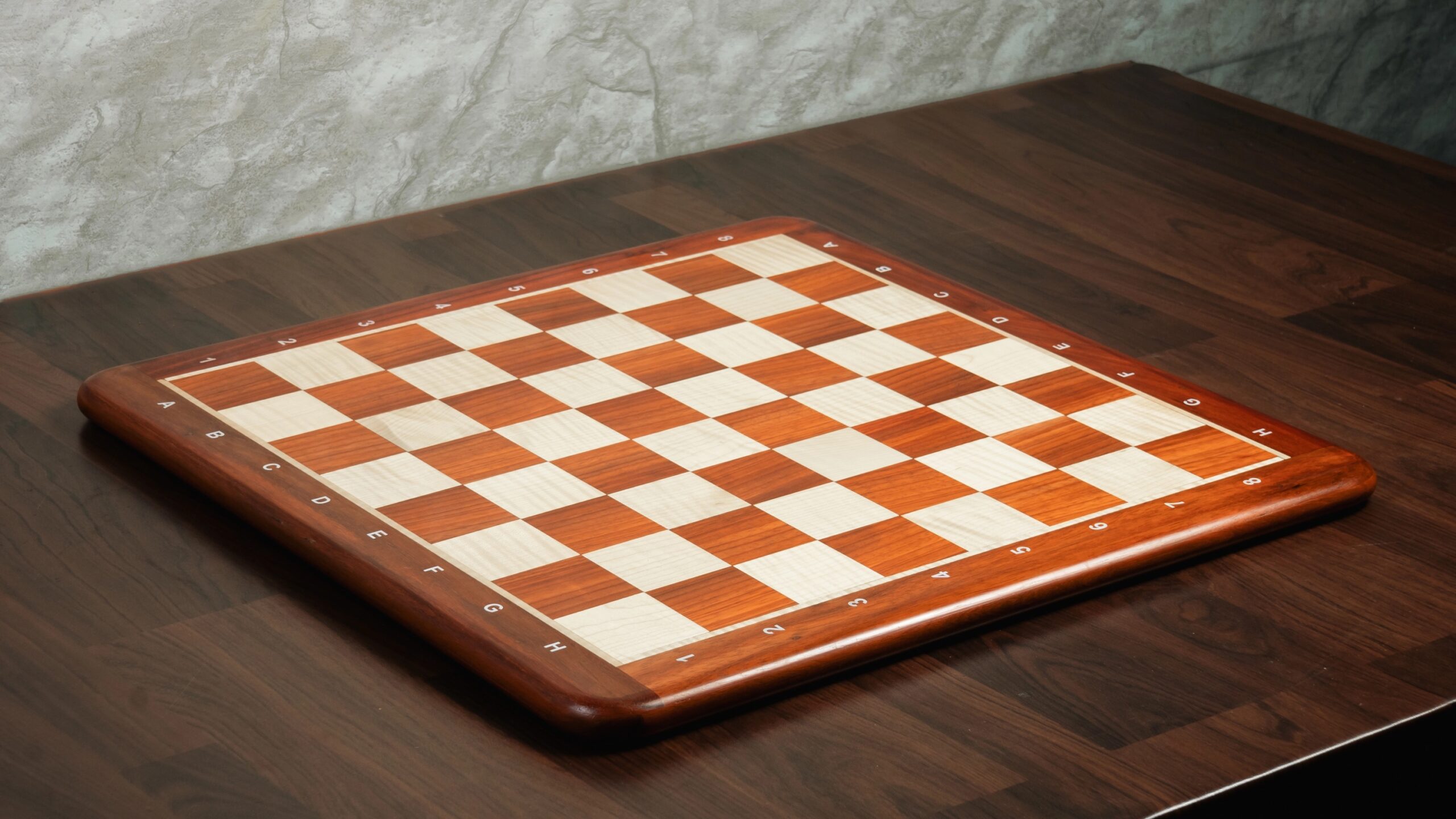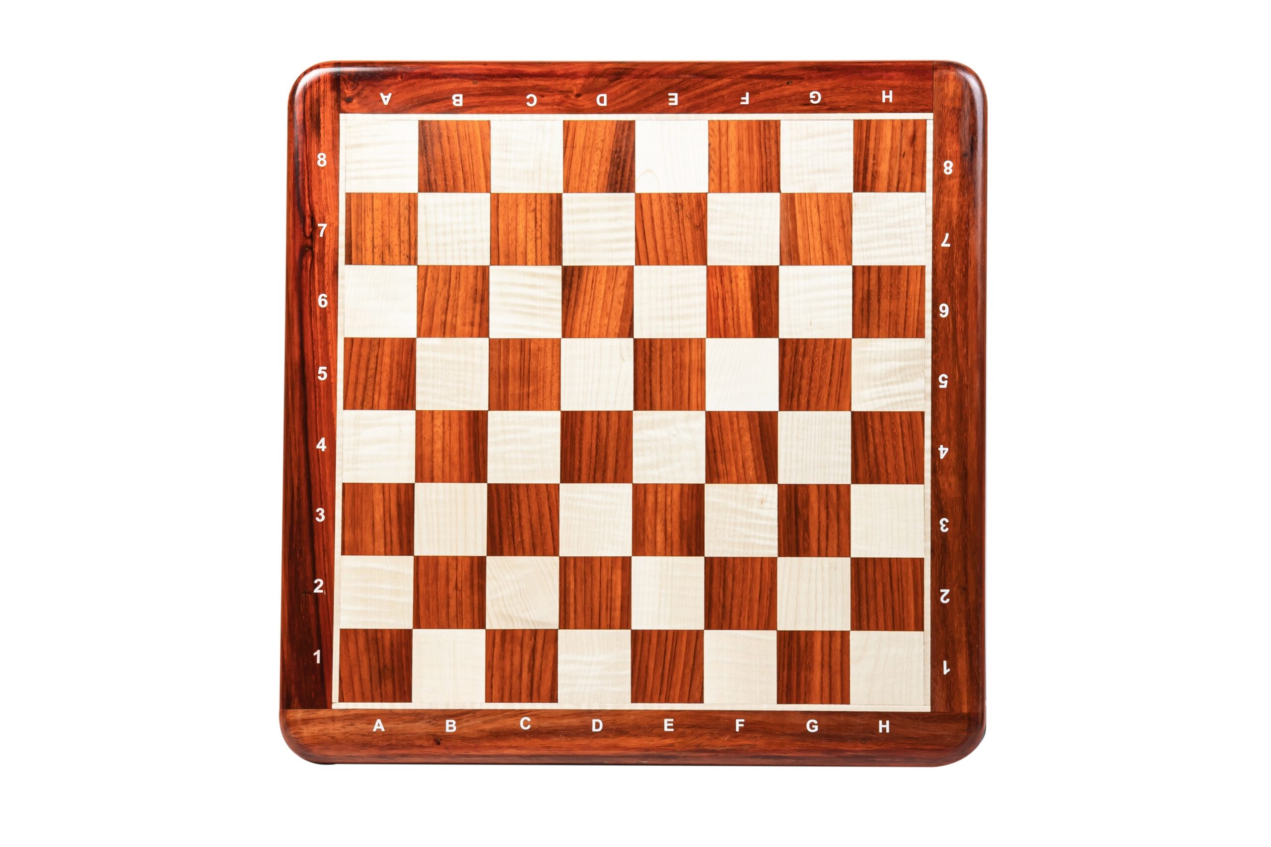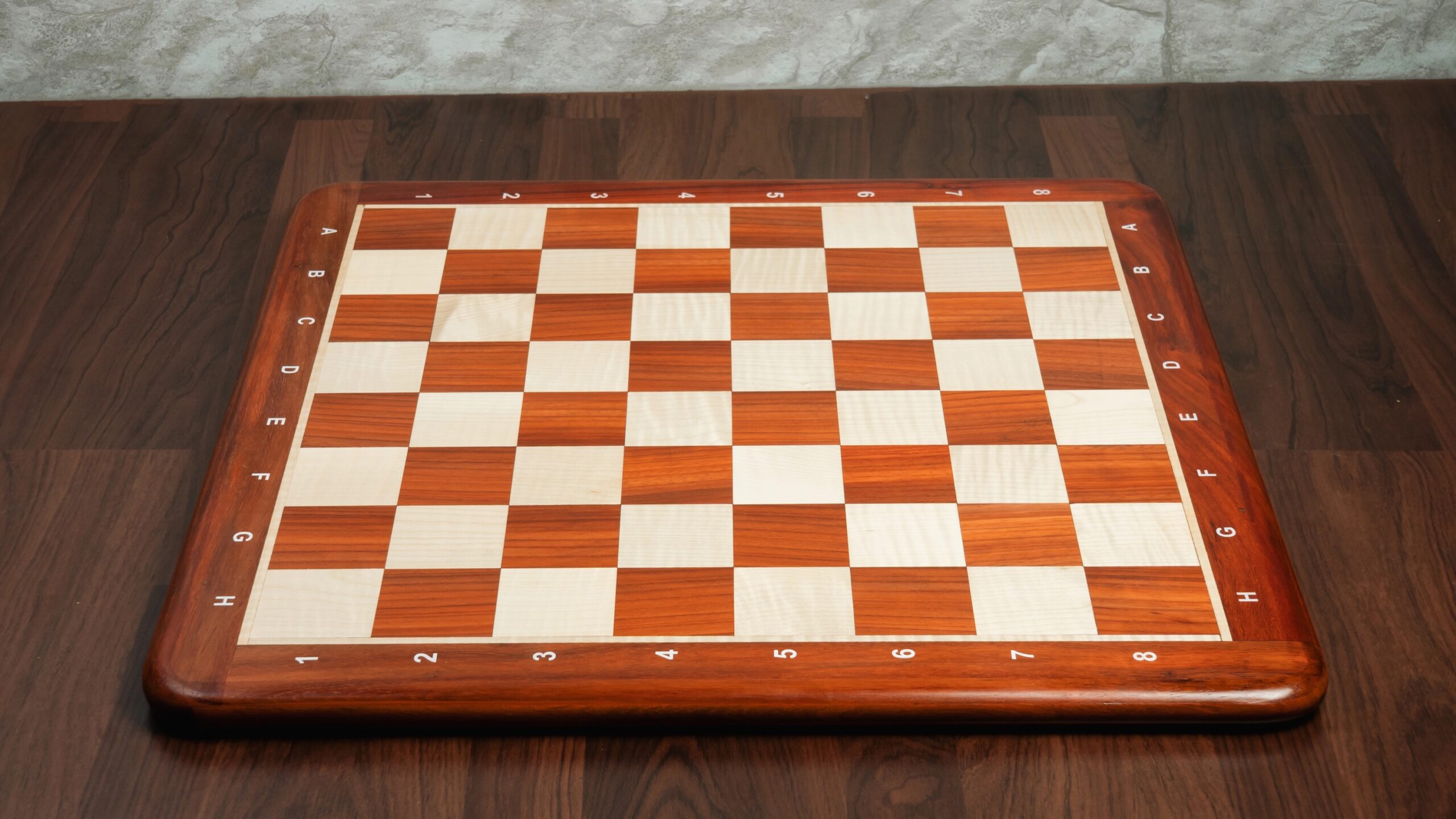 21” PADAUK (BUD) & MAPLE WOOD CHESSBOARD WITH NOTATION – 55 mm SQUARE