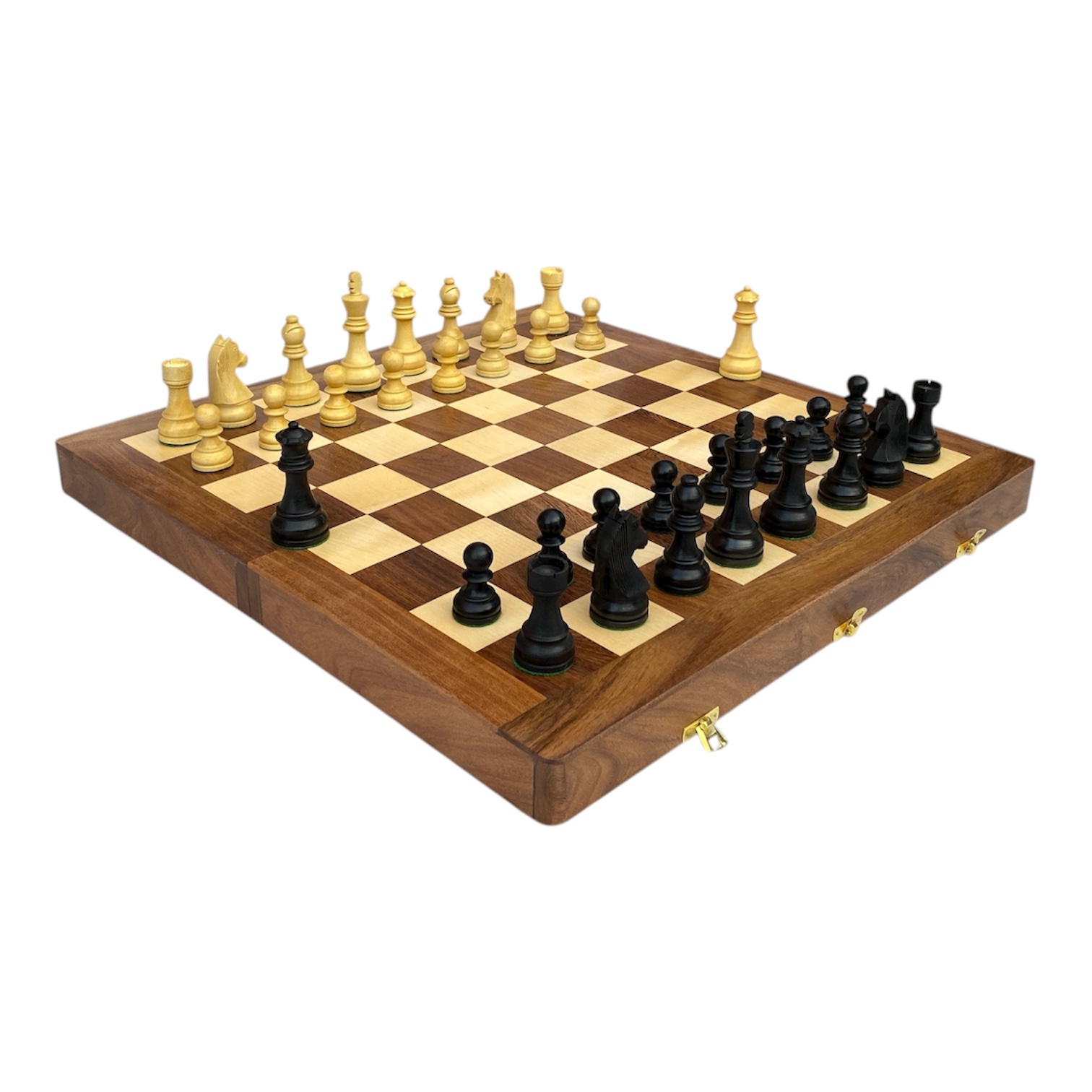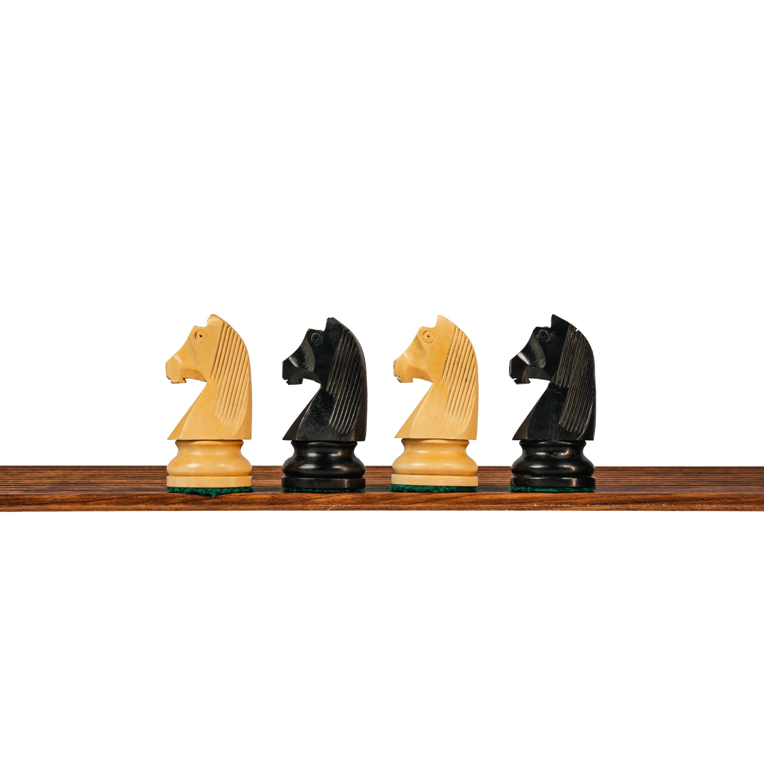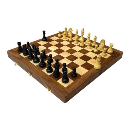 3.75” EBONISED GERMAN KNIGHT CHESS PIECES WITH 20” FOLDING STORAGE CHESSBOARD – 55mm Square
