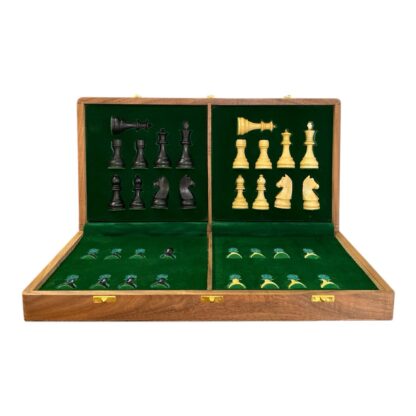 Be the first to review “3.75” EBONISED GERMAN KNIGHT CHESS PIECES WITH 20” FOLDING STORAGE CHESSBOARD – 55mm Square”