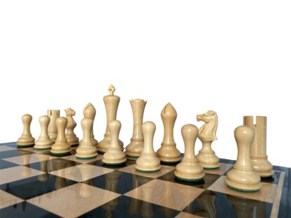 4.4 STAUNTON MODERN EMPIRE EBONY WOOD CHESS PIECES & 21” EBONY WOOD CHESSBOARD