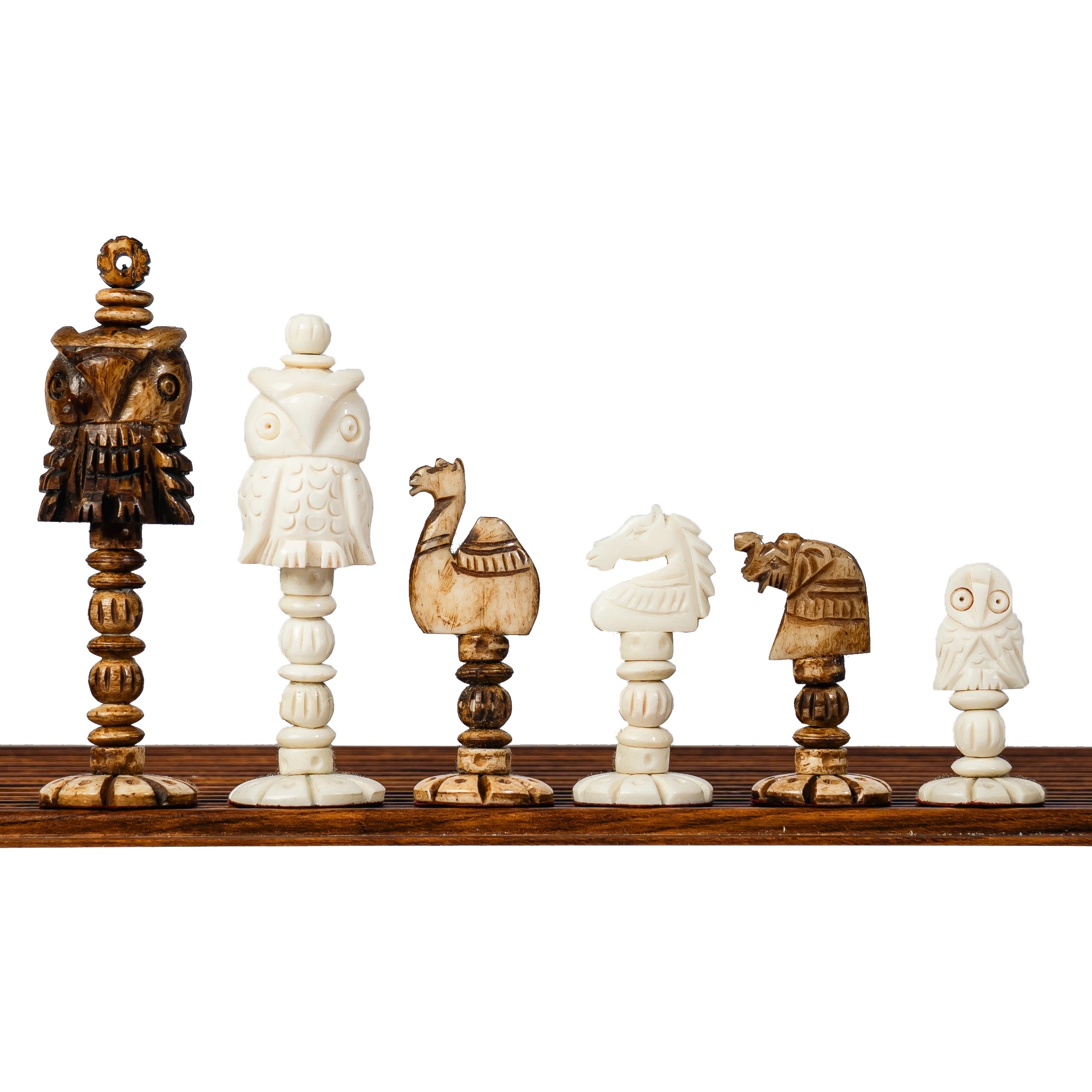 4” ANIMAL THEME CAMEL BONE CHESS PIECES WITH 16” GOLDEN ROSEWOOD CHESS BOARD