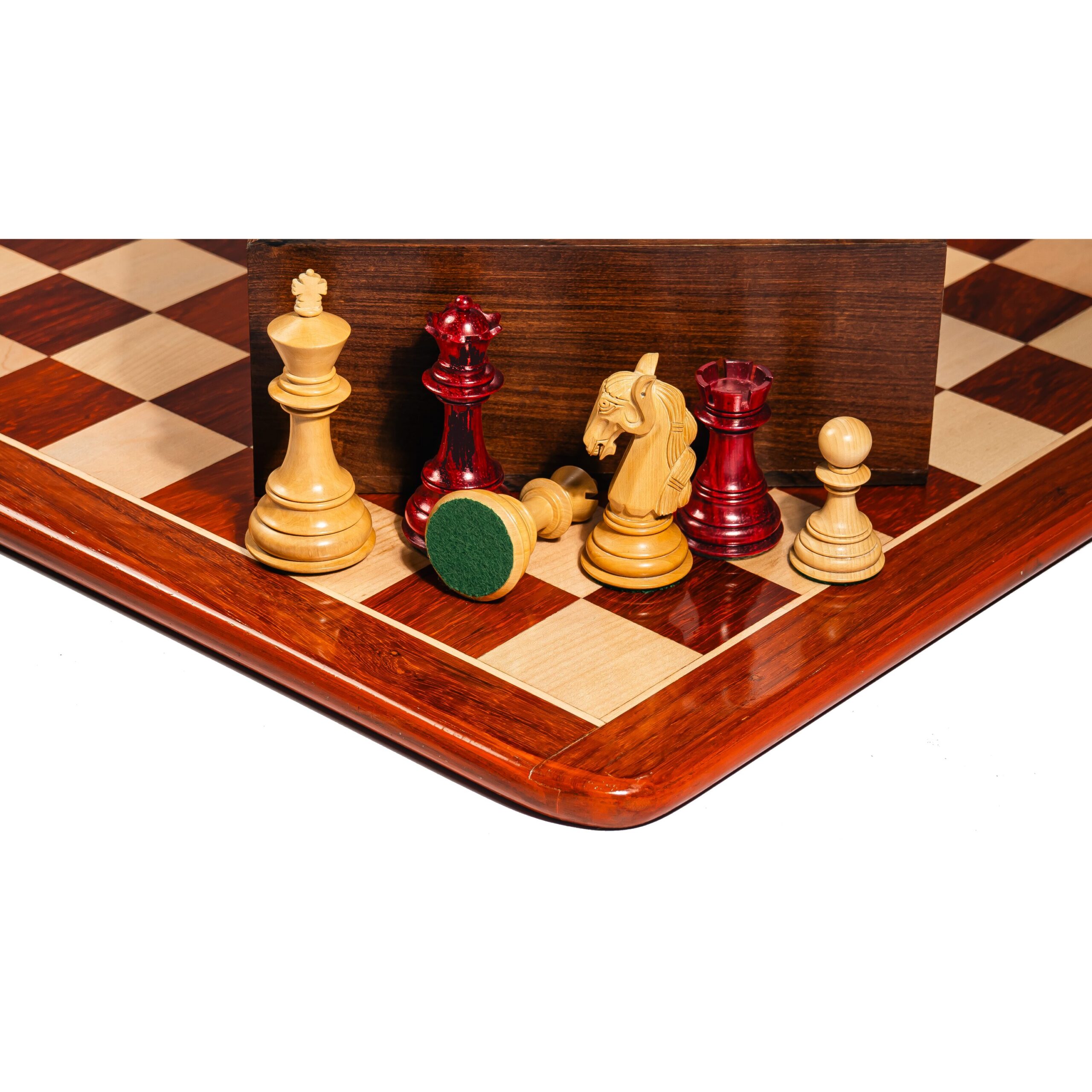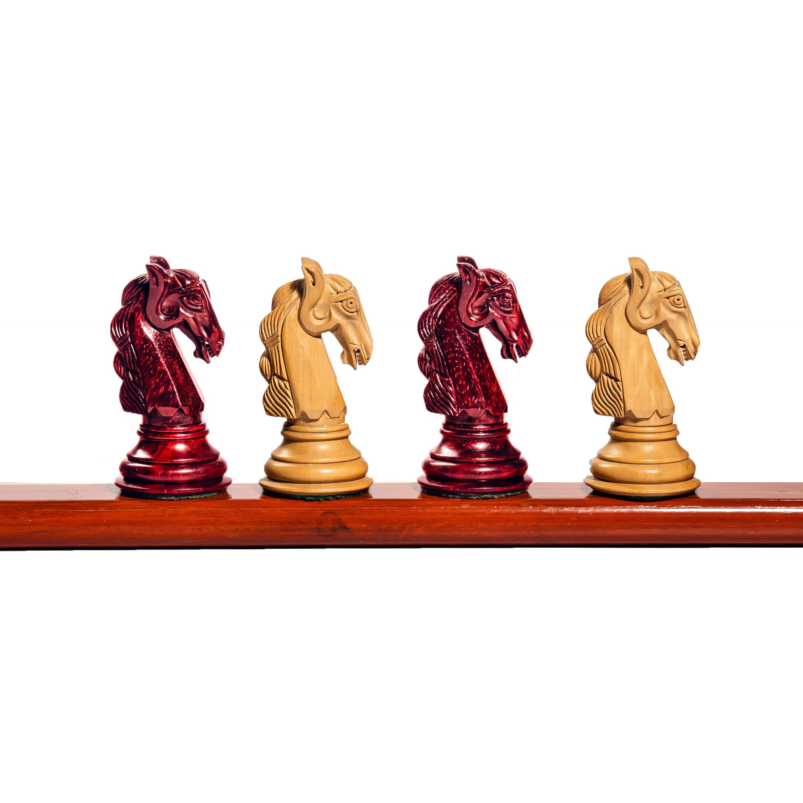 Elevate your game with the 4.5” Braid Knight Staunton Series Luxury triple weighted Chess Pieces, masterfully handcrafted from rich, exotic Padauk wood. Known for its deep crimson hue and exceptional durability, Padauk adds a regal touch to this iconic Staunton design.