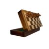 The board folds in half to create a secure storage compartment for the pieces, making it easy to pack and carry. Each piece is handcrafted for a classic look and feel, and the board’s smooth finish adds a touch of elegance to every match.