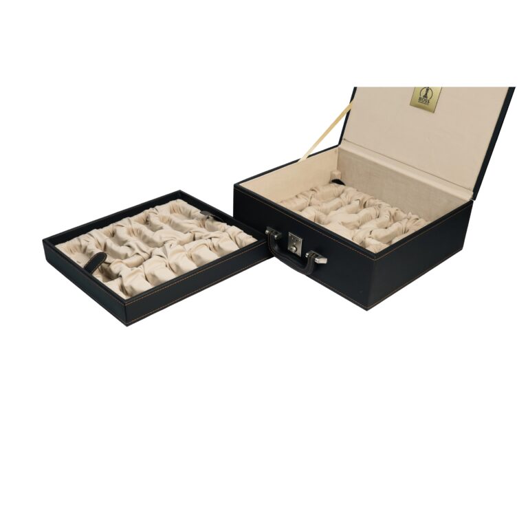 I’ve always believed that how you store your pieces matters almost as much as how you play with them. This leatherette storage box Fulfill my requirement. Classic leather-like finish that instantly evokes the timeless elegance of the game. Inside, the velvet lining feels like it was made to protect chess pieces.